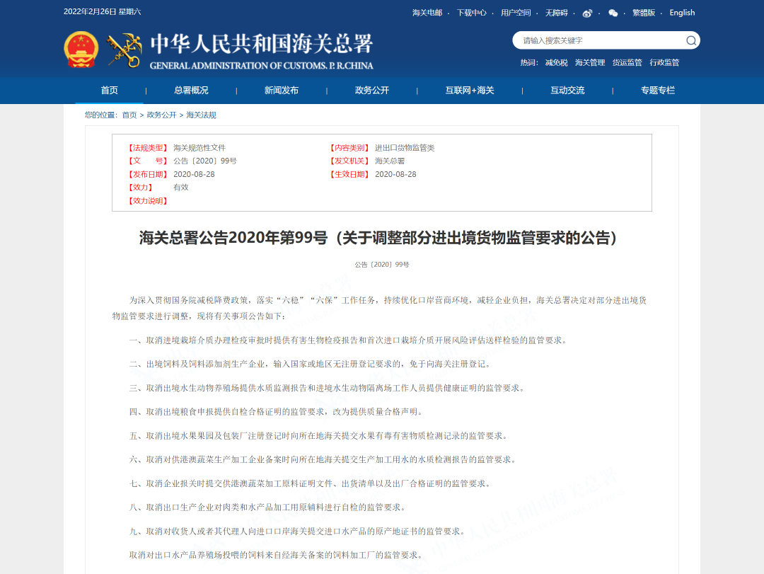 2020年8月,海關(guān)總署發(fā)布《關(guān)于調(diào)整部分進(jìn)出境貨物監(jiān)管要求的公告》(2020年第99號),為深入貫徹國務(wù)院減稅降費(fèi)政策,落實(shí)“六穩(wěn)”“六保”工作任務(wù),持續(xù)優(yōu)化口岸營商環(huán)境,減輕企業(yè)負(fù)擔(dān),決定對部分進(jìn)出境貨物監(jiān)管要求進(jìn)行調(diào)整,其中對進(jìn)口化妝品的監(jiān)管調(diào)整如下:
