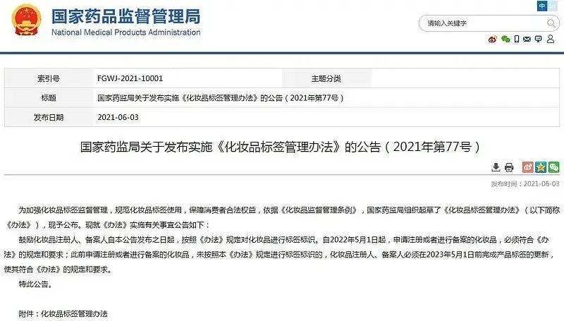 2022年5月開始,國家藥品監(jiān)督管理局關(guān)于《化妝品標(biāo)簽管理辦法》(2021年第77號)將正式施行,關(guān)于進(jìn)口化妝品應(yīng)注意以下內(nèi)容: