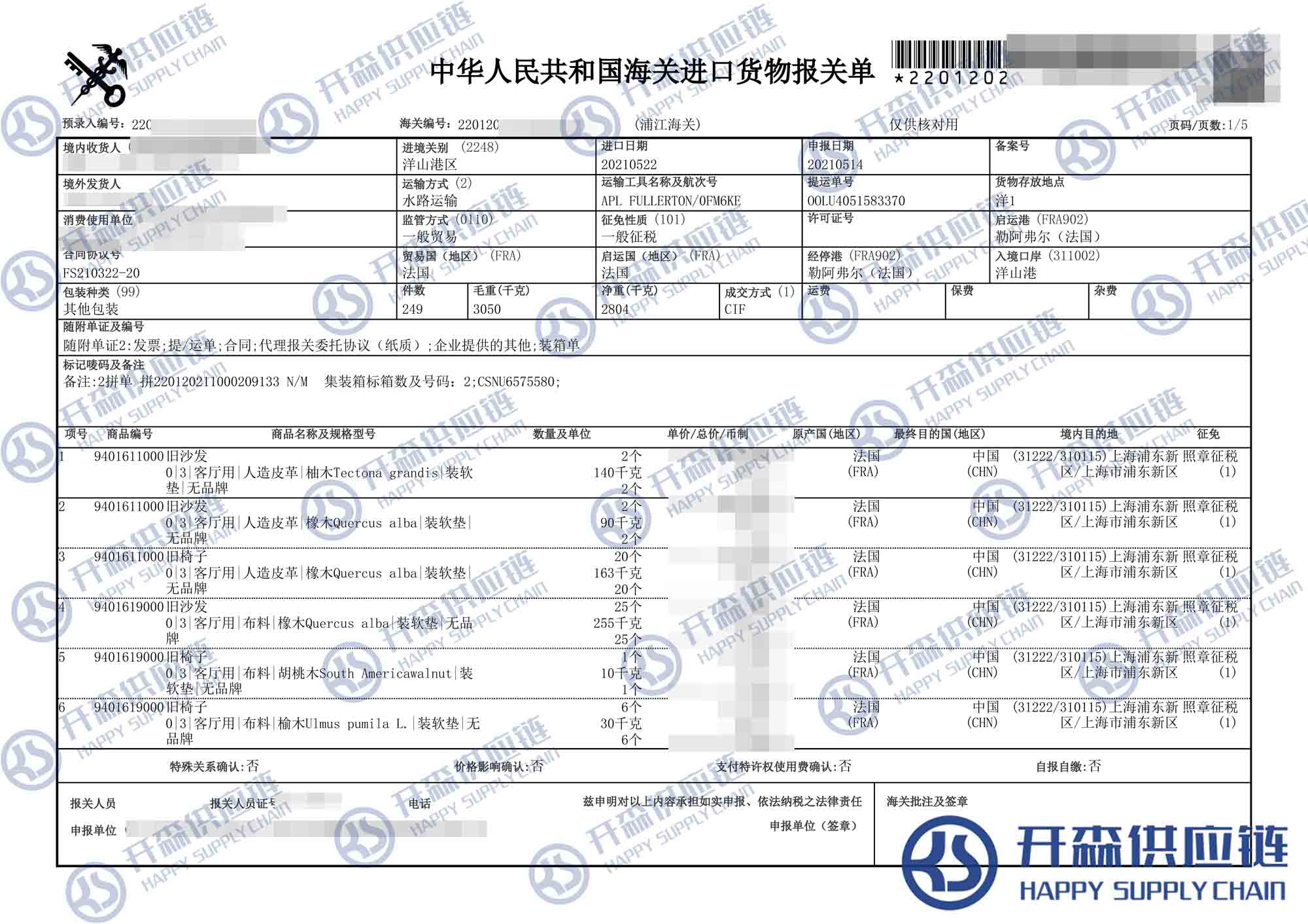 開森供應(yīng)鏈擁有十余年豐富的二手舊家具進口報關(guān)操作經(jīng)驗與案例,為客戶提供家具進口一條龍服務(wù);門到門服務(wù)、進口資質(zhì)、編碼歸類、代辦進口單證代理服務(wù)。安全、高效、快捷,讓客戶省時省心省成本。