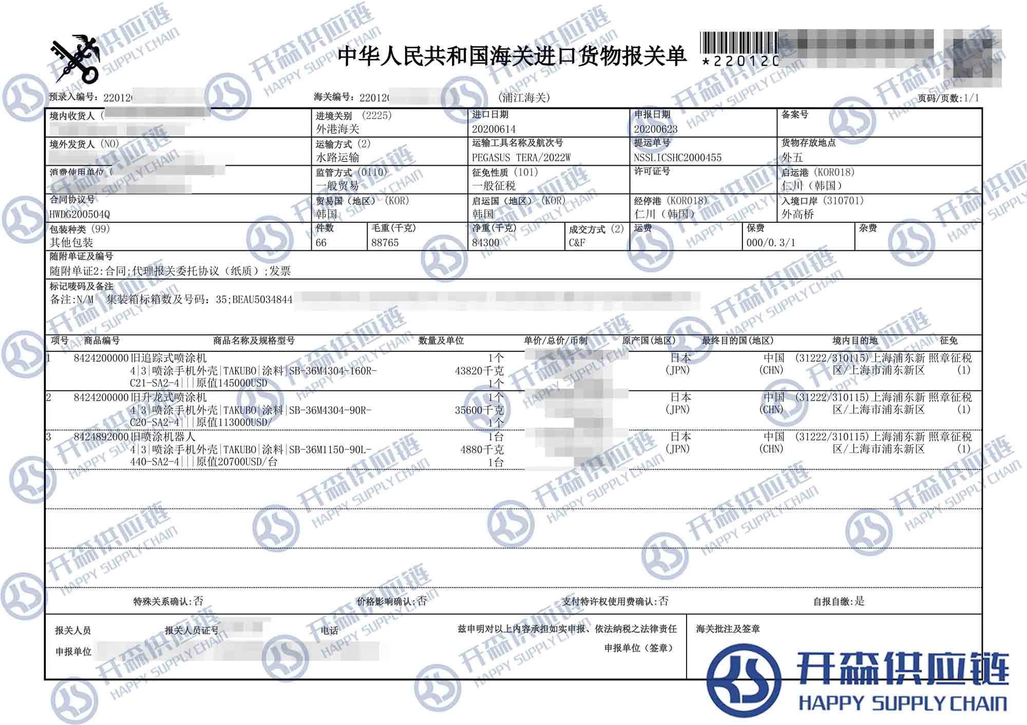 原文標題:上海港韓國舊追蹤式噴涂機進口報關代理【進口案例】