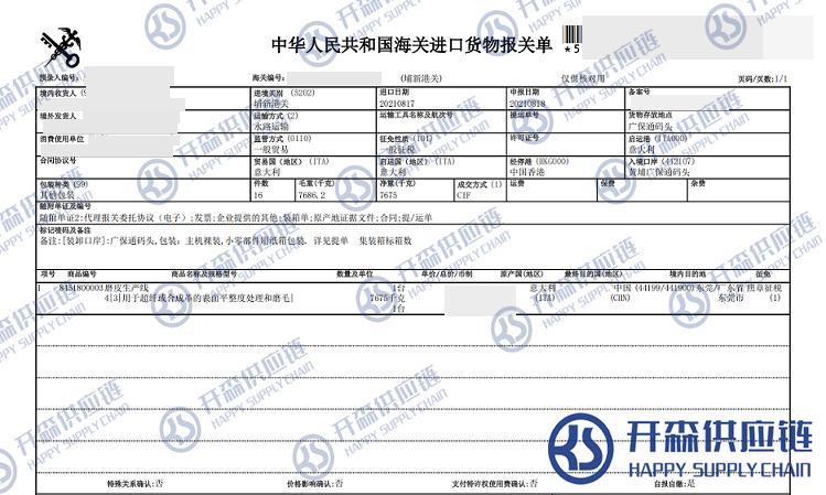 一、意大利磨皮生產(chǎn)線進(jìn)口報(bào)關(guān)代理案例詳情