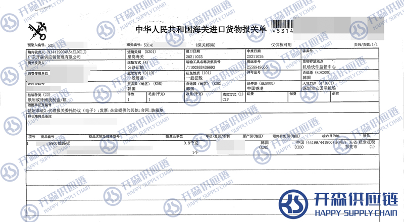 進(jìn)口港口:深圳寶安國(guó)際機(jī)場(chǎng);