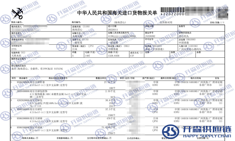 一、高爾夫球桿用品進(jìn)口報(bào)關(guān)代理案例詳情