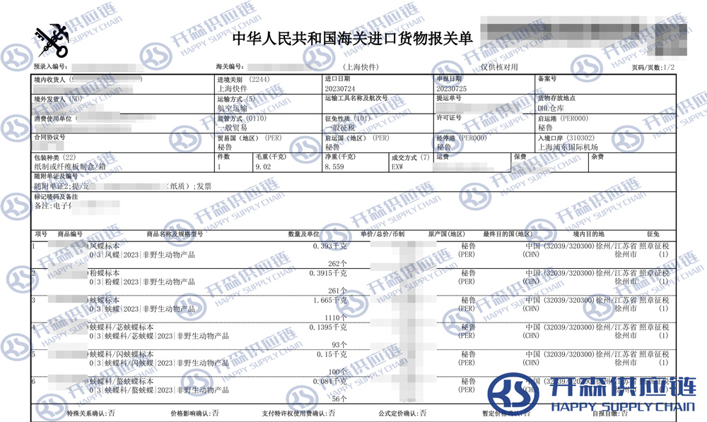 一、秘魯動物標(biāo)本進(jìn)口報(bào)關(guān)代理案例詳情
