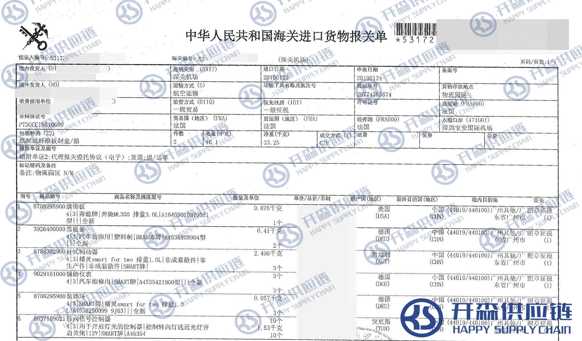 開(kāi)森供應(yīng)鏈擁有多種多樣的汽車(chē)配件進(jìn)口渠道與豐富的進(jìn)口報(bào)關(guān)案例。我司提供收貨、報(bào)檢(商檢)、報(bào)關(guān)清關(guān)、貨物運(yùn)輸一條龍服務(wù)。我們公司的優(yōu)勢(shì):1、價(jià)格優(yōu)惠;2、安全快速;3、專(zhuān)業(yè)與便捷。