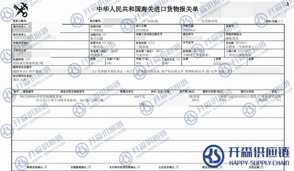 一、馬來(lái)西亞冷凍榴蓮果泥進(jìn)口報(bào)關(guān)代理案例詳情