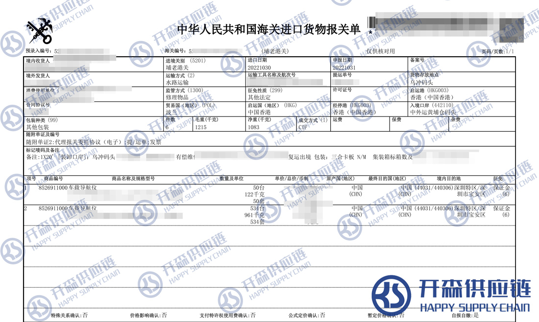 開(kāi)森進(jìn)口供應(yīng)鏈擁有車載導(dǎo)航儀返修進(jìn)口報(bào)關(guān)操作經(jīng)驗(yàn)及案例,十余年操作經(jīng)驗(yàn)及案例可供參考,可按需定制車載導(dǎo)航儀返修進(jìn)口方案,幫助客戶解決進(jìn)口難題,快速進(jìn)口清關(guān)到港到貨。